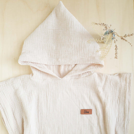 Auf Wunsch könnt ihr den Poncho auch personalisiert mit Namenslabel bestellen.