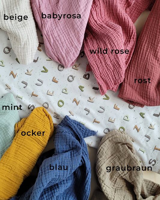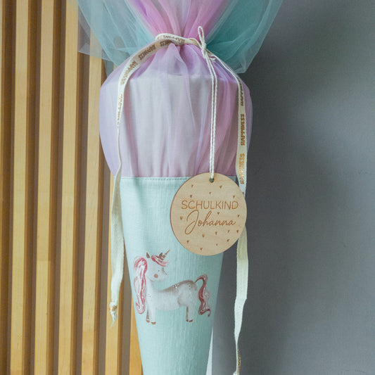 Schultüte aus Musselin mit Name und Bügelbild (optional) in Wunschfarbe